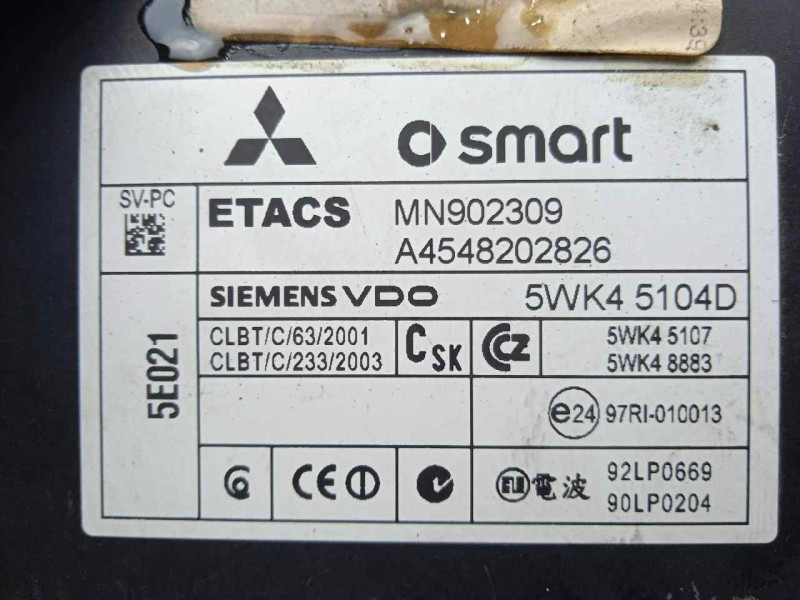 Piezas vehÃculos CAJA RELES / FUSIBLES A4545400424-MN902450U SMART SMART FORFOUR 1.5 CDI CAT OEM: A4545400424-MN902450U Código interno: 559450 45,00 € Con IVA