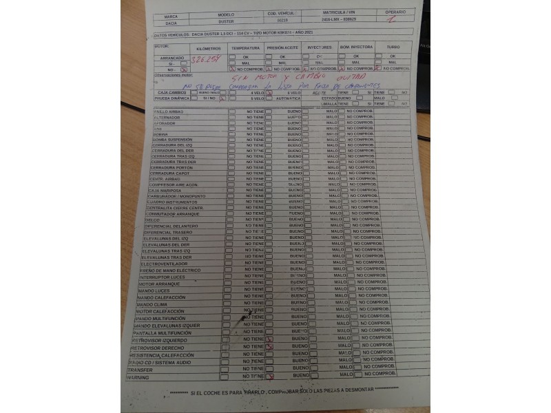 Piezas vehÃculos DESPIECE MOTOR DACIA DACIA DUSTER (HM_) 1.5 DCI 115 4X4 OEM: - Código interno: 750730 Ver